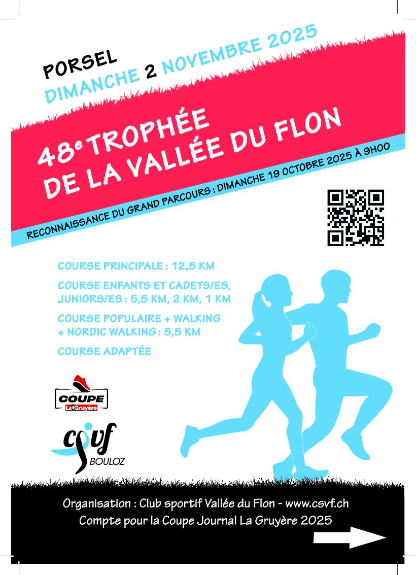 Le Club sportif de la Vallée du Flon organise une course visant à rassembler les jeunes, les moins jeunes et les familles autour des valeurs du sport, du dépassement de soi et de la solidarité. Elle aura lieu le dimanche 2 novembre 2025 à Porsel.