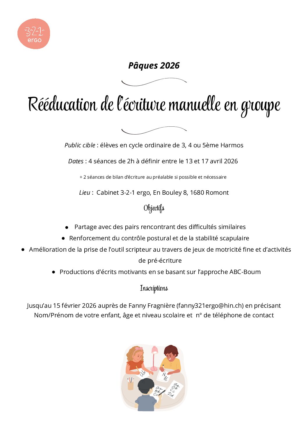 Coup de projecteur – Rééducation de l’écriture manuelle en groupe en ergothérapie – Pâques 2026
